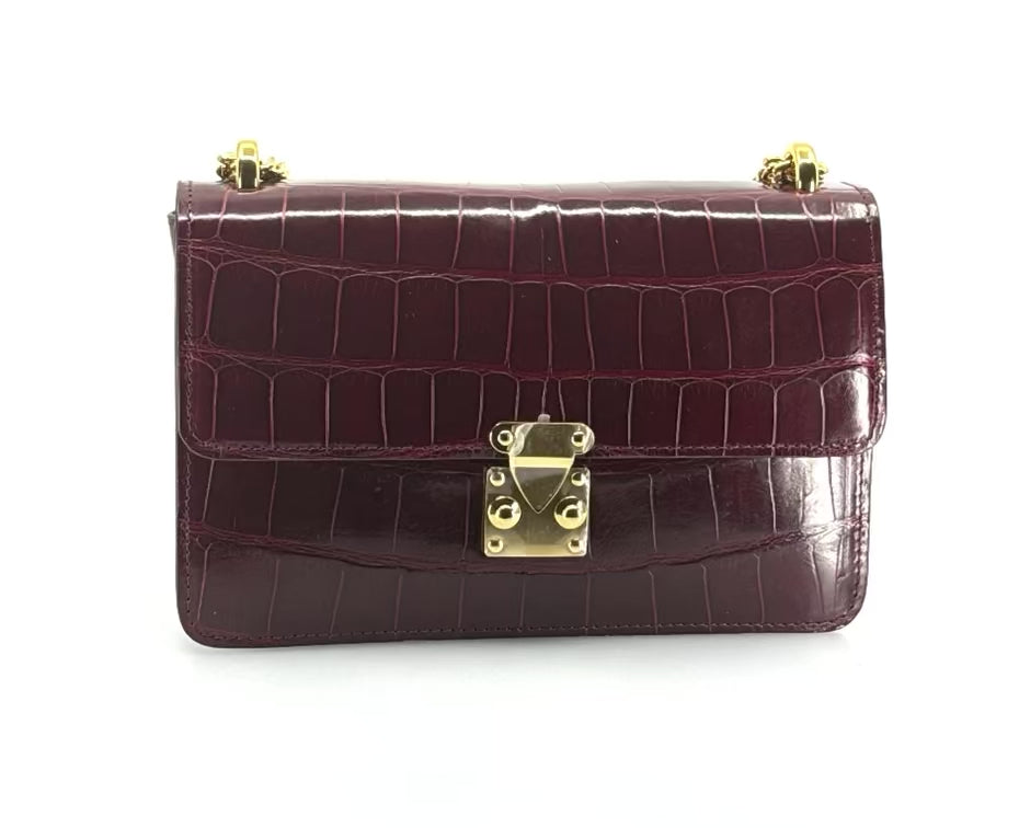 Burgundy Alligator Chain Handbag