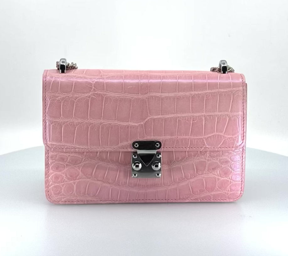 Pink Alligator Chain Handbag